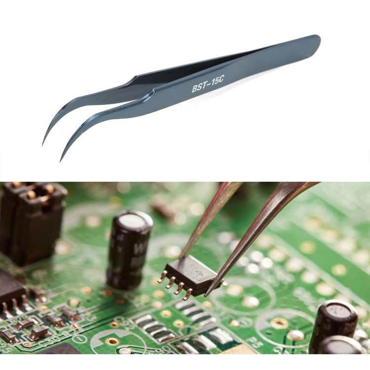 طول: 116 میلیمتر جنس بدنه: استیل ضد زنگ خواص: آنتیاستاتیک، ضد زنگ، مقاوم در برابر اسید نوک: سر کج، ظریف و دقیق وزن: حدود 20 گرم کاربرد: تعمیرات موبایل، جایگذاری قطعات SMD، کارهای دقیق الکترونیکی