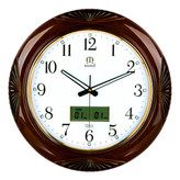 ساعت دیواری گرد از نوع تقویم دار، یک ساعت دیواری با ظاهری شکیل است که به دلیل داشتن تقویم برای ادارات، مدارس و مغازه ها بسیار مناسب می باشد. صفحه نمایش گرد آن به رنگ سفید و بسیار با کیفیت است و در عقربه ها و موقعیت اعداد از ماده شب نما استفاده شده است تا در تاریکی هم بتوانید ساعت را بخوانید. قاب پلاستیکی این ساعت بسیار مرغوب می باشد و همانند چوب طراحی شده است. در پایین صفحه ساعت یک صفحه نمایش دیجیتالی وجود دارد تا بتوانید تاریخ روز، هفته و ماه را مشاهده نمایید. موتور آن از نوع روانگرد بی صدا است.