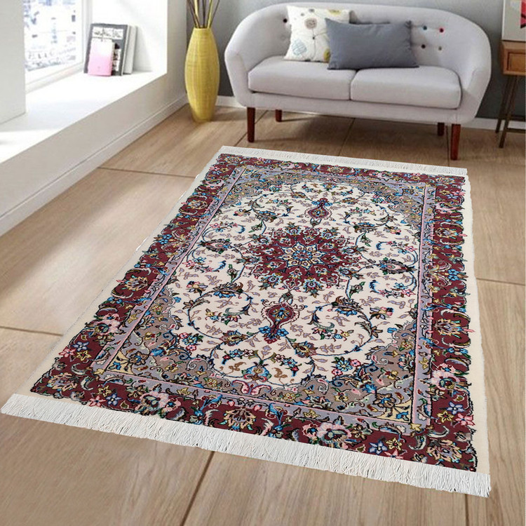 استفاده شده از رنگ های سنتی بارنگ طبیعی با کیفیت بسیار اعلا و رنگ ثابت گل ابریشم کف غرق در ابریشم