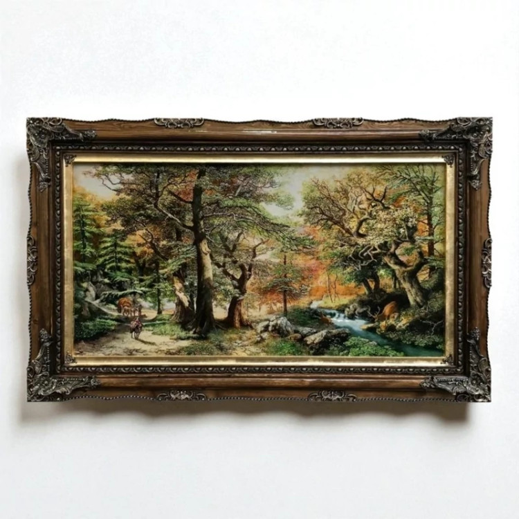 تابلو فرش دستبافت طرح جنگل سرو خزان بافت تبریز
