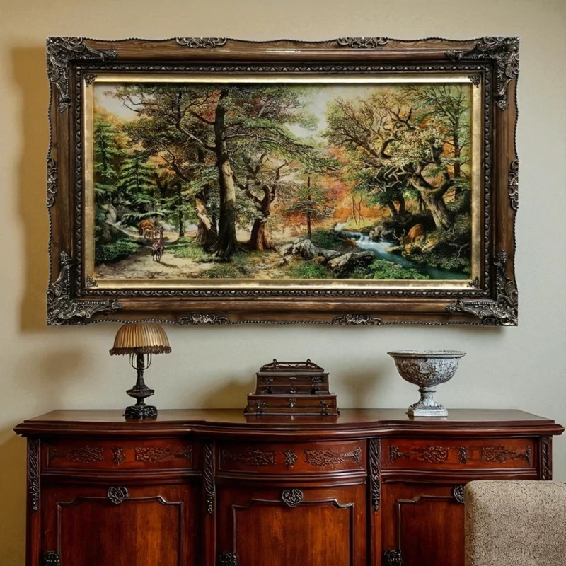 تابلو فرش دستبافت طرح جنگل سرو خزان بافت تبریز