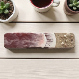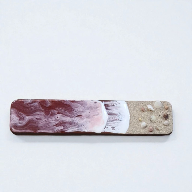 یک اکسسوری هنری و خاص برای علاقهمندان به دکوراسیون متفاوت. این جاعودی ترکیبی از چوب طبیعی و رزین شفاف است که با ظرافت، تصویری شبیه به دریا، موج و ساحل شنی را در خود جای داده. وجود حلزون و گوشماهیهای کوچک طبیعی در طراحی، حالوهوایی واقعیتر و آرامشبخش به آن داده است.