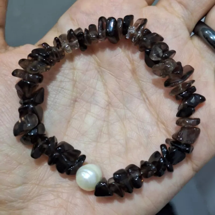 کوارتز اسموکی کوارتز دودی مروارید پرورشی دستبند کوارتز اسموکی مروارید پرورشی