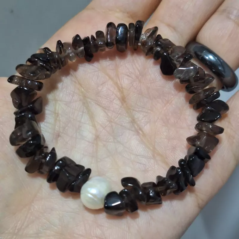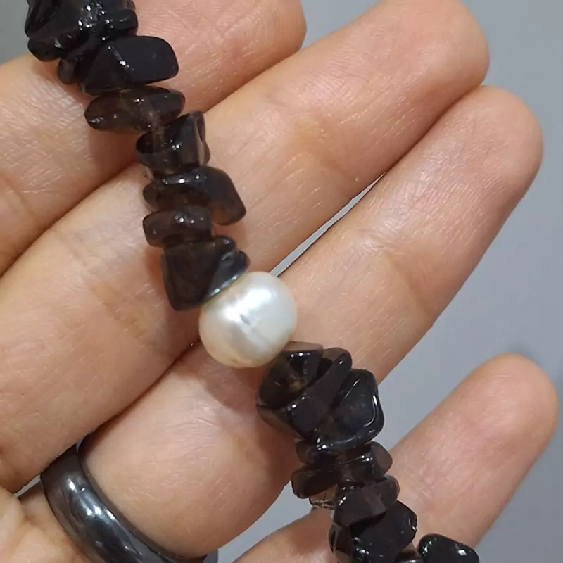 کوارتز اسموکی کوارتز دودی مروارید پرورشی دستبند کوارتز اسموکی مروارید پرورشی