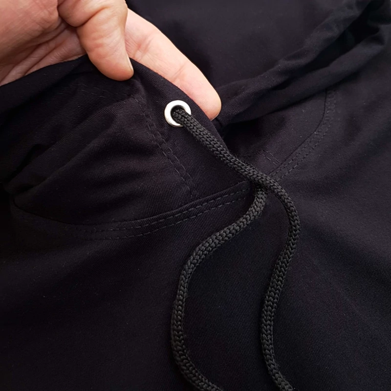 ست ورزشی مردانه نخی تاپ کلاه دار شلوارک رنگ مشکی b14021207E