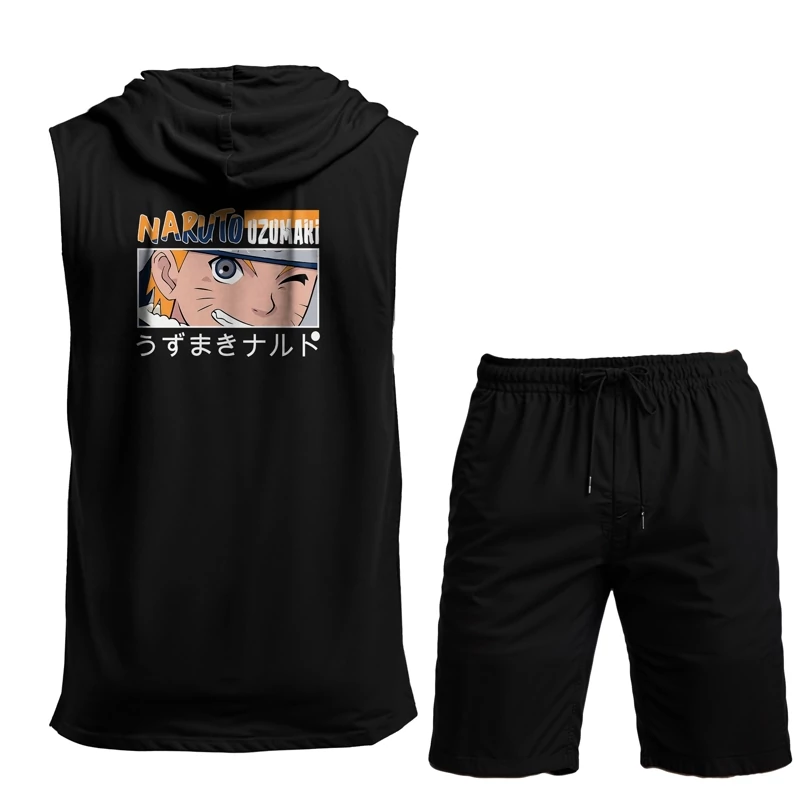 ست ورزشی مردانه نخی تاپ کلاه دار شلوارک رنگ مشکی b14030115a