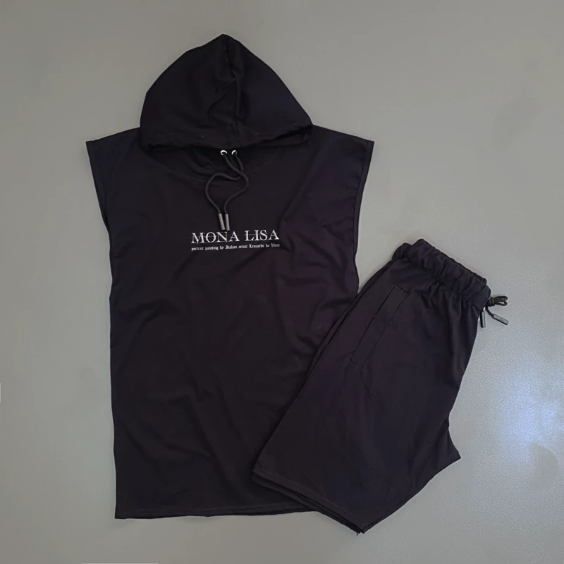 ست ورزشی مردانه نخی مشکی، ترکیبی از راحتی، استایل و عملکرد است. این ست شامل تاپ بدون آستین کلاهدار و شلوارک سبک است که از پارچه نخی تنفسپذیر و لطیف تولید شده و برای روزهای گرم تابستان، باشگاه، یا استفاده روزمره در خانه کاملاً مناسب است.
