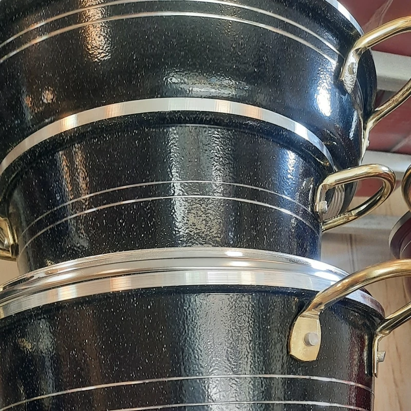 دسته ها طلایی و دکمه های در قابلمه هم طلایی میباشد.