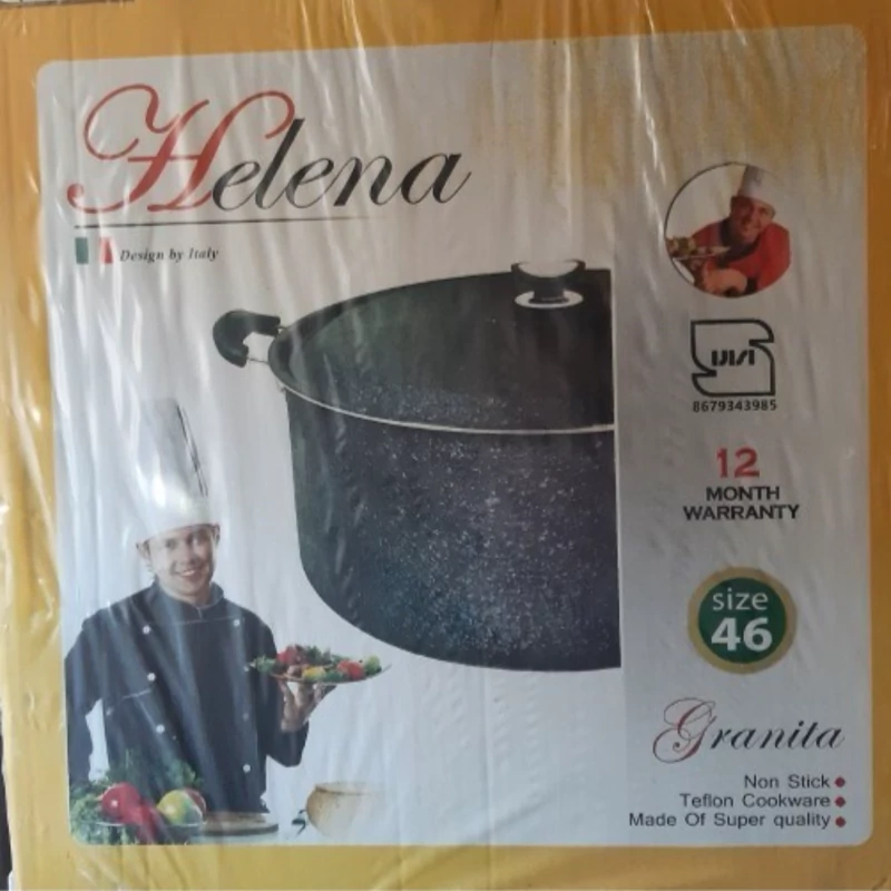 ماهیتابه گرانیتی ضخیم هلنا سایز46 تهیه شده از بهترین آلیاژ آلومینیوم با ضخامت 2 و مرغوبترین گرانیت موجود میباشد. که ضمن دوام هرچه بیشتر تابه باعث افزایش سلامتی شما میشود. هلنا یکی از بهترین تولیدکنندگان ظروف نچسب در ایران میباشد. سالهاست در این زمینه فعالیت دارد و نتیجه این تجربه تولید محصولات با کیفیت و به روز برای شما میباشد