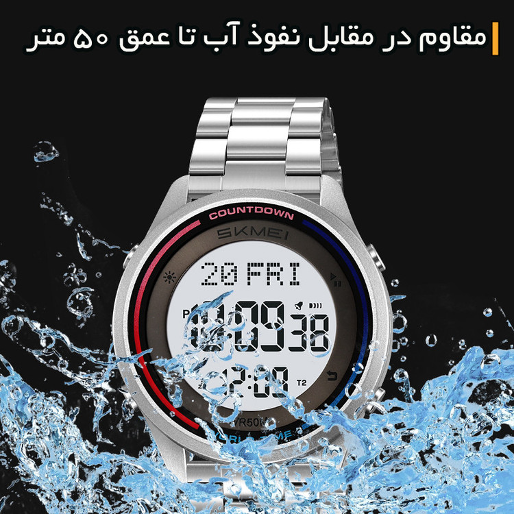 نمایش 24 ساعته , نمایش ساعت دوم , نور پس زمینه , تاریخ شمار , آلارم , ضد آب