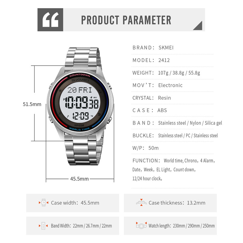 ساعت مچی دیجیتال مردانه اسکمی مدل 2412 SI