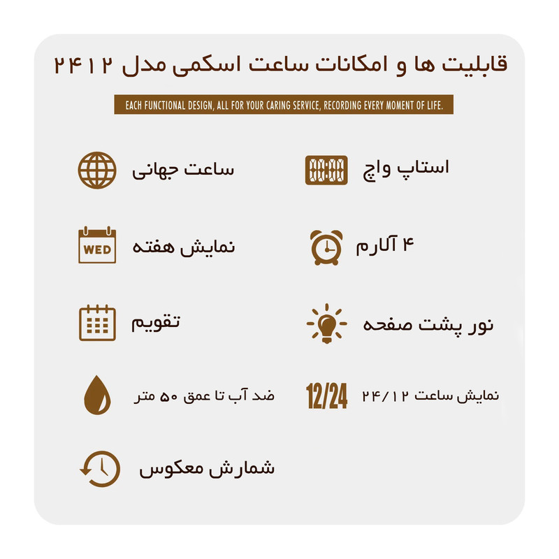 + موارد بیشتراین روزها دیگر همه به تاثیر ساعت بر تیپ و استایل آگاهی کامل دارند. کمتر کسی پیدا می شود که تصور کند یک ساعت فقط کالایی برای نشان دادن زمان است.هر چه جلوتر می رویم جای خالی این محصول لوکس و زیبا را روی مچ خیلی از افراد مشاهده می کنیم. زیرا این روزها صنعت مد و فشن رابطه مستقیمی با استفاده از این اکسسوری جذاب دارد.شاید به نظر شما آنقدری که میگویند خرید یک ساعت شیک و استفاده از آن اهمیت نداشته باشد، اما بد نیست بدانید که اگر در انتخاب خود دقت کرده باشید و متناسب با آن پوشش مناسب را انتخاب کنید، آن ساعت مچی شگفت انگیز می تواند غوغایی در ظاهر شما بپا کند. شاید در نگاه نخست این زیبایی و جذابیت خیلی محسوس نباشد، اما یقینا تاثیرش را بر ناخودآگاه بینندگان خواهد گذاشت. ساعت های مچی به عنوان یک همراه همیشگی مناسب هر مکانی هستند. باشگاه ورزشی، استخر شنا، مسافرت، محل کار، قرار های دوستانه و عاشقانه و در کل برای استفاده روزمره مناسب هستند. شرکت اسکمی با ارائه مدل های مختلف اینبار ساعتی فوق العاده جذاب با تنوع رنگی چشم نواز را به تولید رسانده است.در این مدل به دلیل طراحی و رنگ بندی جذاب که در آن بکار رفته است حس خوشایندی را به شما و طرف مقابل القا میکند.از قابلیت های این ساعت میتوان به ضد آب تا عمق 30 متر , کرنومتر , تنظیم همزمان 4 آلارم مختلف , نمایش زمان 12/24 ساعته , چراغ صفحه , تقویم , نمایش ساعت جهانی و همچنین ویژگی جذاب DST با قابلیت تغییر ساعت به صورت خودکار در اول فصل بهار و آخر فصل تابستان اشاره کرد.
