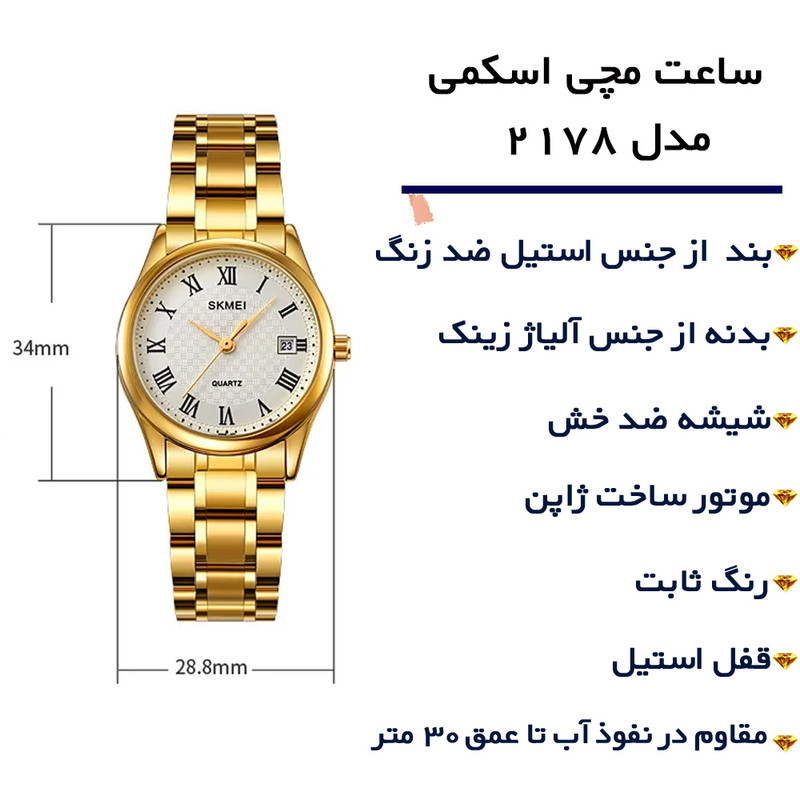 ساعت مچی عقربه ای زنانه اسکمی مدل 2178 GD
