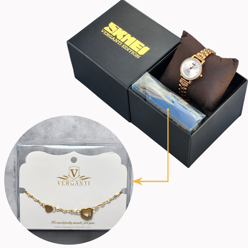 ست خاص ساعت اسکمی مدل 1311 با قاب نگیندار و بند استیل ضدزنگ، همراه با دستبند لاکچری ورگانتی که با طراحی عاشقانه و لطیف، ترکیبی درخشان و متفاوت را خلق کرده است. انتخابی شیک و ماندگار برای استایلهای خاص و هدایای ارزشمند.