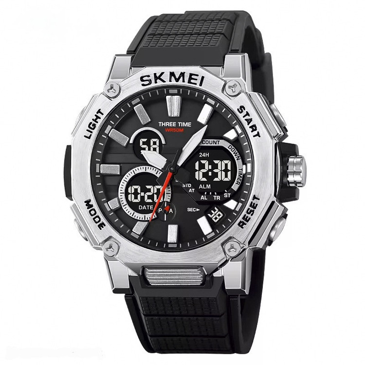 مشاهده محصولات مرتبطاین روزها دیگر همه به تاثیر ساعت بر تیپ و استایل آگاهی کامل دارند. کمتر کسی پیدا می شود که تصور کند یک ساعت فقط کالایی برای نشان دادن زمان است.هر چه جلوتر می رویم جای خالی این محصول لوکس و زیبا را روی مچ خیلی از افراد مشاهده می کنیم. زیرا این روزها صنعت مد و فشن رابطه مستقیمی با استفاده از این اکسسوری جذاب دارد.شاید به نظر شما آنقدری که میگویند خرید یک ساعت شیک و استفاده از آن اهمیت نداشته باشد، اما بد نیست بدانید که اگر در انتخاب خود دقت کرده باشید و متناسب با آن پوشش مناسب را انتخاب کنید، آن ساعت مچی شگفت انگیز می تواند غوغایی در ظاهر شما بپا کند. شاید در نگاه نخست این زیبایی و جذابیت خیلی محسوس نباشد، اما یقینا تاثیرش را بر ناخودآگاه بینندگان خواهد گذاشت. ساعت های مچی به عنوان یک همراه همیشگی مناسب هر مکانی هستند. باشگاه ورزشی، استخر شنا، مسافرت، محل کار، قرار های دوستانه و عاشقانه و در کل برای استفاده روزمره مناسب هستند. شرکت اسکمی با ارائه مدل های مختلف اینبار ساعتی فوق العاده جذاب با تنوع رنگی چشم نواز را به تولید رسانده است.در این مدل به دلیل طراحی و رنگ بندی جذاب که در آن بکار رفته است حس خوشایندی را به شما و طرف مقابل القا میکند.از قابلیت های این ساعت میتوان به ضد آب تا عمق 50 متر , کرنومتر , آلارم , نمایش 12/24 ساعته , نمایش همزمان 3 زمان مختلف , چراغ صفحه , تقویم و همچنین شمارنده معکوس اشاره کرد.