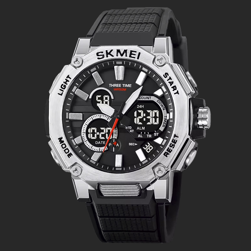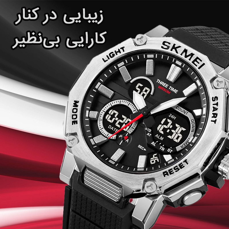 مشاهده محصولات مرتبطاین روزها دیگر همه به تاثیر ساعت بر تیپ و استایل آگاهی کامل دارند. کمتر کسی پیدا می شود که تصور کند یک ساعت فقط کالایی برای نشان دادن زمان است.هر چه جلوتر می رویم جای خالی این محصول لوکس و زیبا را روی مچ خیلی از افراد مشاهده می کنیم. زیرا این روزها صنعت مد و فشن رابطه مستقیمی با استفاده از این اکسسوری جذاب دارد.شاید به نظر شما آنقدری که میگویند خرید یک ساعت شیک و استفاده از آن اهمیت نداشته باشد، اما بد نیست بدانید که اگر در انتخاب خود دقت کرده باشید و متناسب با آن پوشش مناسب را انتخاب کنید، آن ساعت مچی شگفت انگیز می تواند غوغایی در ظاهر شما بپا کند. شاید در نگاه نخست این زیبایی و جذابیت خیلی محسوس نباشد، اما یقینا تاثیرش را بر ناخودآگاه بینندگان خواهد گذاشت. ساعت های مچی به عنوان یک همراه همیشگی مناسب هر مکانی هستند. باشگاه ورزشی، استخر شنا، مسافرت، محل کار، قرار های دوستانه و عاشقانه و در کل برای استفاده روزمره مناسب هستند. شرکت اسکمی با ارائه مدل های مختلف اینبار ساعتی فوق العاده جذاب با تنوع رنگی چشم نواز را به تولید رسانده است.در این مدل به دلیل طراحی و رنگ بندی جذاب که در آن بکار رفته است حس خوشایندی را به شما و طرف مقابل القا میکند.از قابلیت های این ساعت میتوان به ضد آب تا عمق 50 متر , کرنومتر , آلارم , نمایش 12/24 ساعته , نمایش همزمان 3 زمان مختلف , چراغ صفحه , تقویم و همچنین شمارنده معکوس اشاره کرد.
