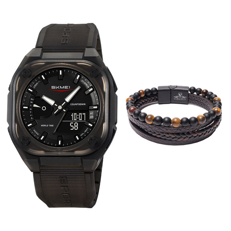 مشاهده محصولات مرتبطاین مجموعهی بینظیر از ساعت مدل 2328 اسکمی و دستبند چرمی قهوهای مشکی ورگانتی، انتخابی استثنایی برای شماست که به دنبال ترکیب استایل و عملکرد هستید! ساعت اسکمی با بدنه ABS و بند TPU مشکی، وزن سبک 43.9 گرمی و کریستال رزین، طراحی اسپرت و مقاومی ارائه میدهد. این ساعت با ابعاد 44.8 میلیمتر (عرض)، 14.3 میلیمتر (ضخامت) و طول 255 میلیمتر، قابلیتهایی مثل نمایش زمان جهانی، کرونومتر برای زمانسنجی دقیق، 4 زنگ هشدار برای یادآوری، تقویم با نمایش روز و تاریخ، نور EL برای دید در شب، شمارش معکوس برای مدیریت زمان، ساعت 12/24 ساعته، و تنظیم DST دارد—برای مثال، زمان جهانی برای سفرها مفید است، کرونومتر برای ورزشکاران عالی است، زنگ هشدار به برنامهریزی کمک میکند، و نور EL در تاریکی کاربرد دارد. با مقاومت آب تا 50 متر، این ساعت برای فعالیتهای روزمره و ورزشی ایدهآل است. اما نقطهی عطف این مجموعه، دستبند چرمی ورگانتی است؛ با چرم قهوهای مشکی باکیفیت، بافت چندلایه و مهرههای جذاب، استایلی شیک و منحصربهفرد به دست شما میبخشد و با نرمی و انعطافپذیریاش، راحتی بینظیری در استفاده طولانیمدت فراهم میکند، چه در روزمره و چه در موقعیتهای خاص، جلوهای خاص به استایل شما اضافه میکند.