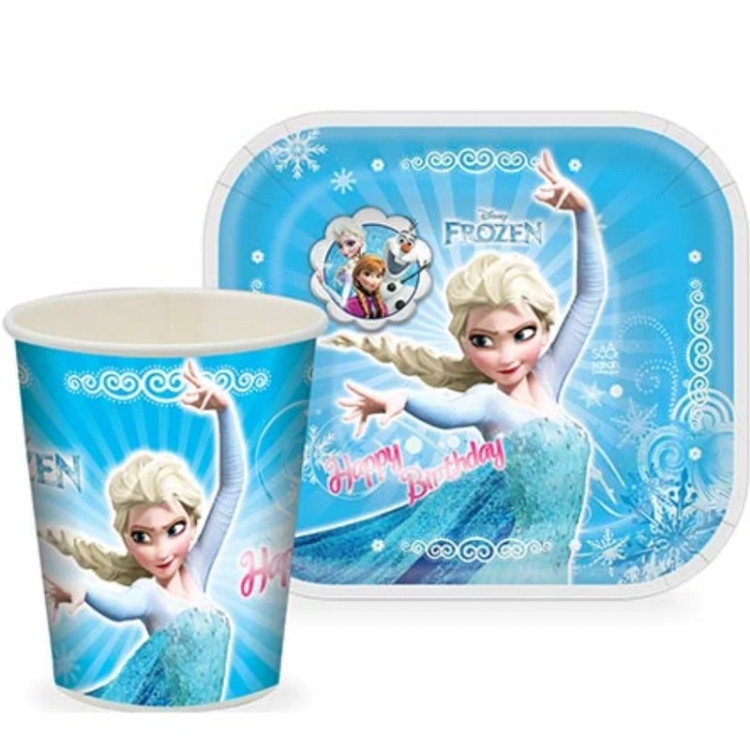 پیش دستی و لیوان تم تولدی فروزن و السا (12عددی)