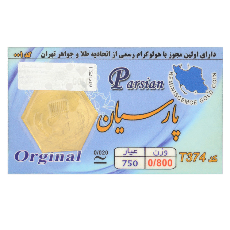 شمش طلا 18 عیار طلای مستجابی مدل پارسیان کد010