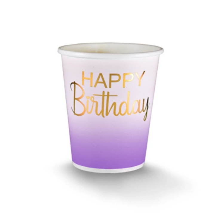 لیوان تم تولد طلاکوب هپی طیف بنفش، از پرمصرف ترین ظروف یک بار مصرف، برای سرو انواع نوشیدنی های سرد و گرم مانند چای، شربت، نوشابه و... است.