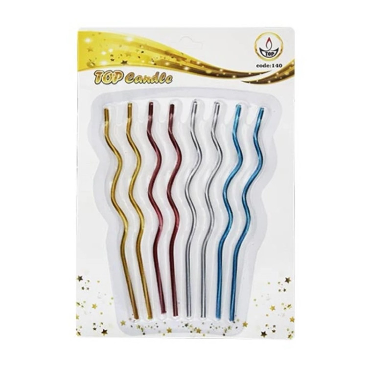 شمع روی کیک ماکارونی متالیک رنگی 8 عددی