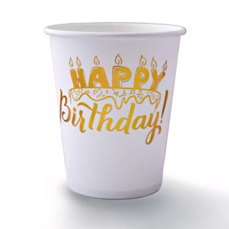 لیوان کاغذی تم تولد هپی طلاکوب سفید