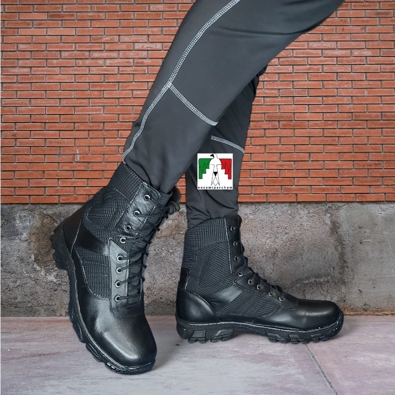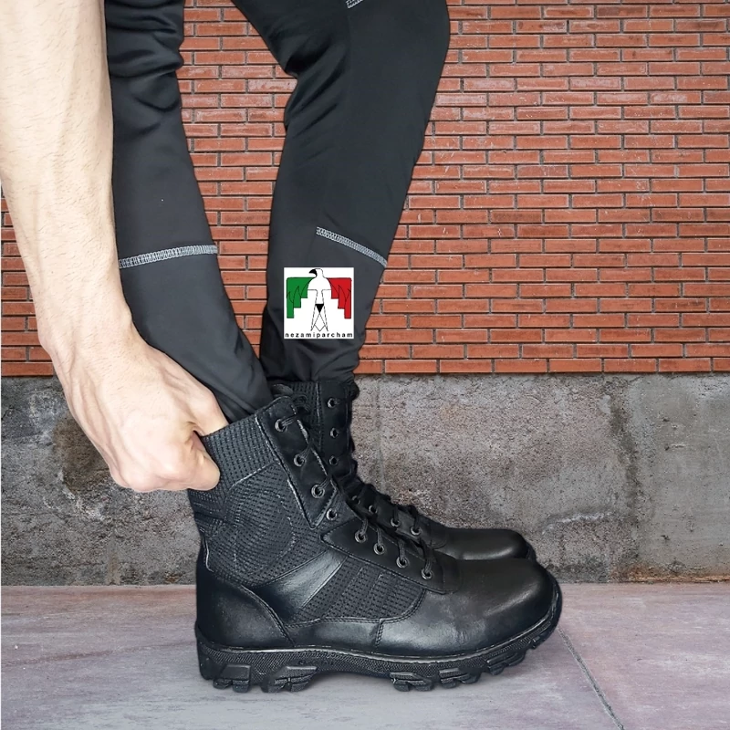 پوتین کوهنوردی قارتال بغل برزنتی کماندو مشکی ضخیم طبی سبک پوتین نظامی بدون زیپ پوتین کماندویی چرم تبریز