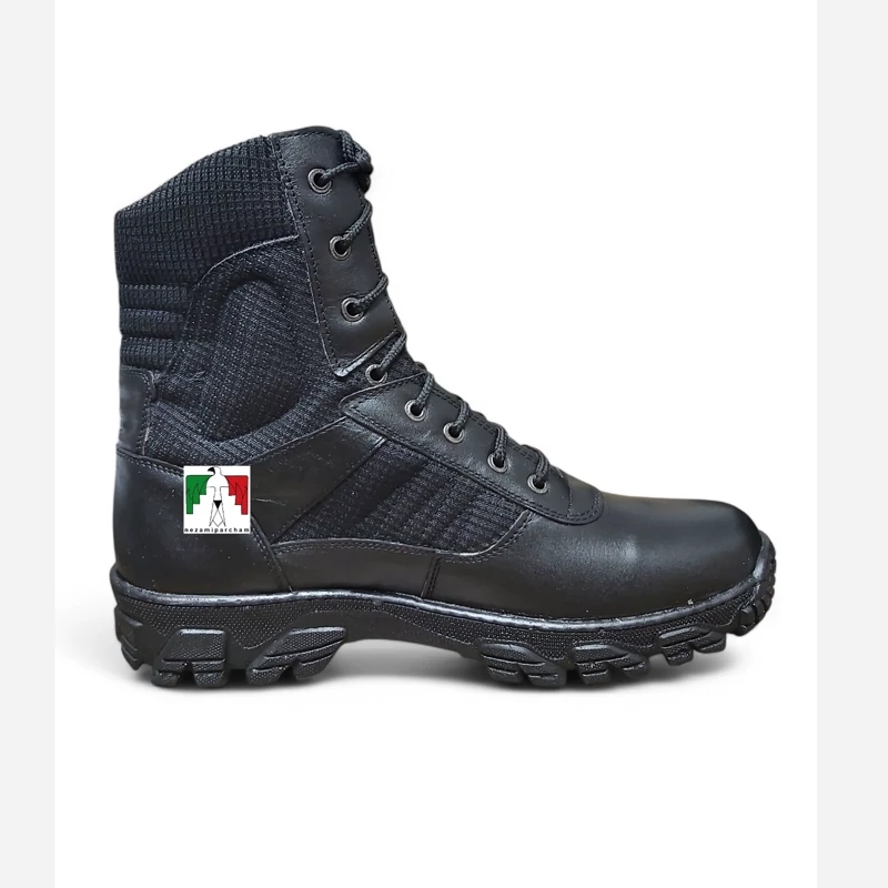 پوتین کوهنوردی قارتال بغل برزنتی کماندو مشکی ضخیم طبی سبک پوتین نظامی بدون زیپ پوتین کماندویی چرم تبریز