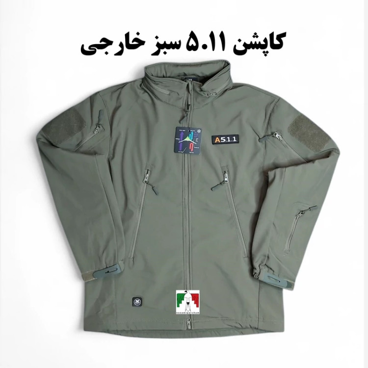 کاپشن تاکتیکال 511 سبز خارجی سبک مقاوم آب و باد کاپشن کوهنوردی چند جیب نظامی ارتشی کاپشن 5.11 طبیعتگردی بادگیر اورکت