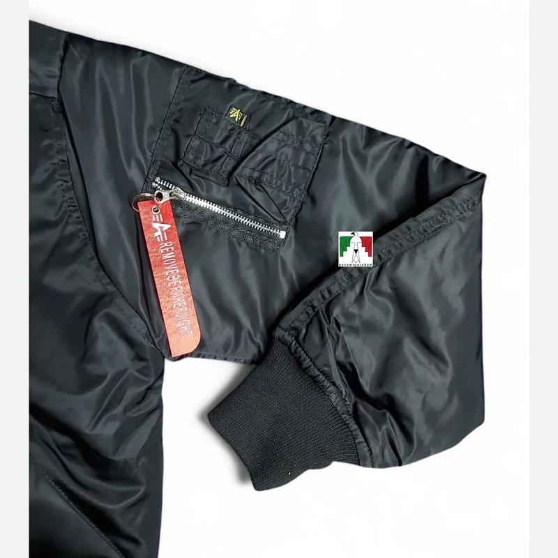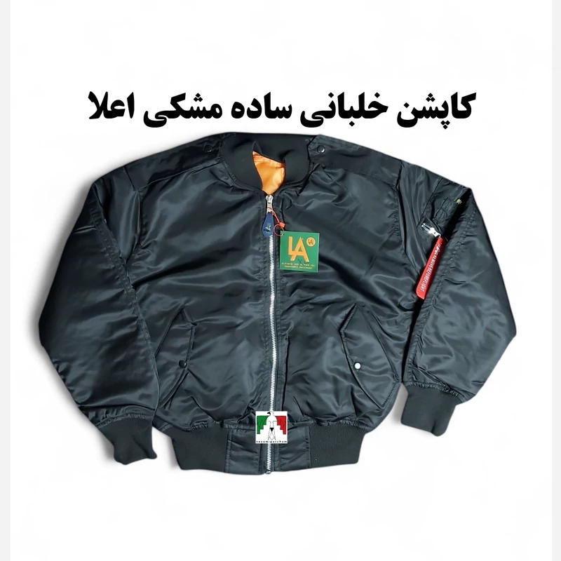 کاپشن خلبانی پرواز مشکی ساده اعلا طرح آمریکایی آلفا کاپشن کوهنوردی طبیعتگردی ضد آب و باد Pilot jacket ALPHA