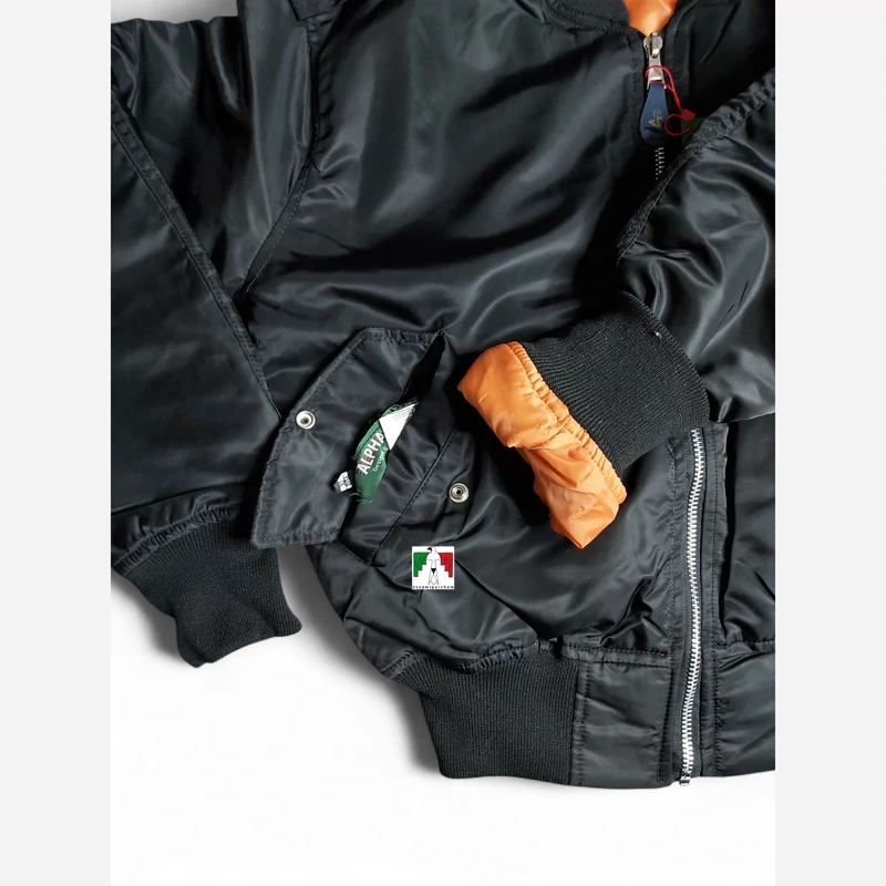 کاپشن خلبانی پرواز مشکی ساده اعلا طرح آمریکایی آلفا کاپشن کوهنوردی طبیعتگردی ضد آب و باد Pilot jacket ALPHA