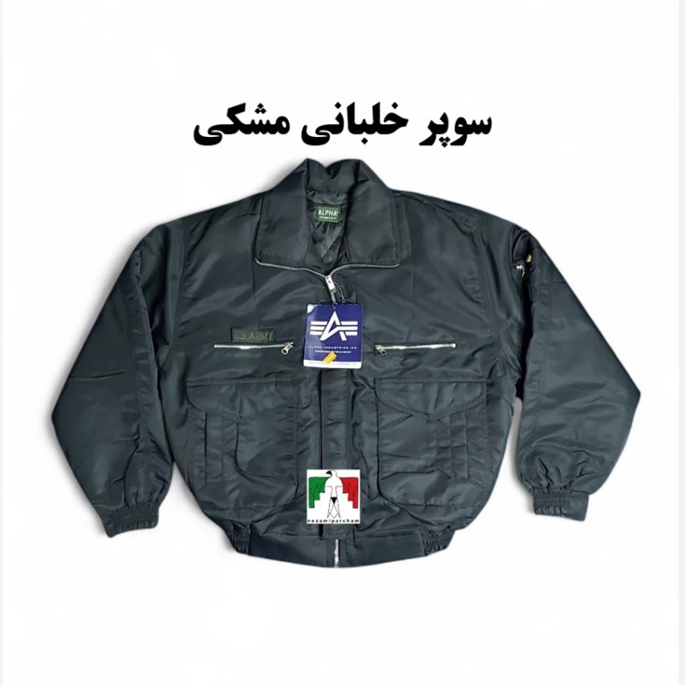 کاپشن خلبانی سوپر خلبانی مشکی طرح آلفا خارجی کاپشن پرواز زمستانه ضدآب و باد یقه دار کاپشن کوهنوردی و نظامی
