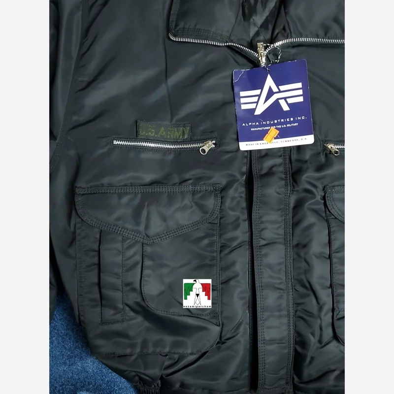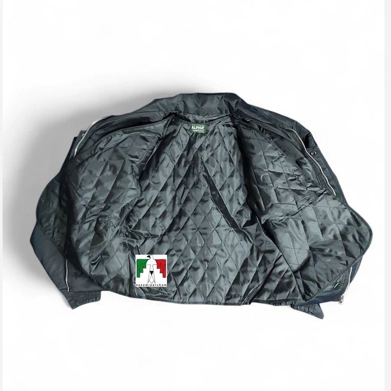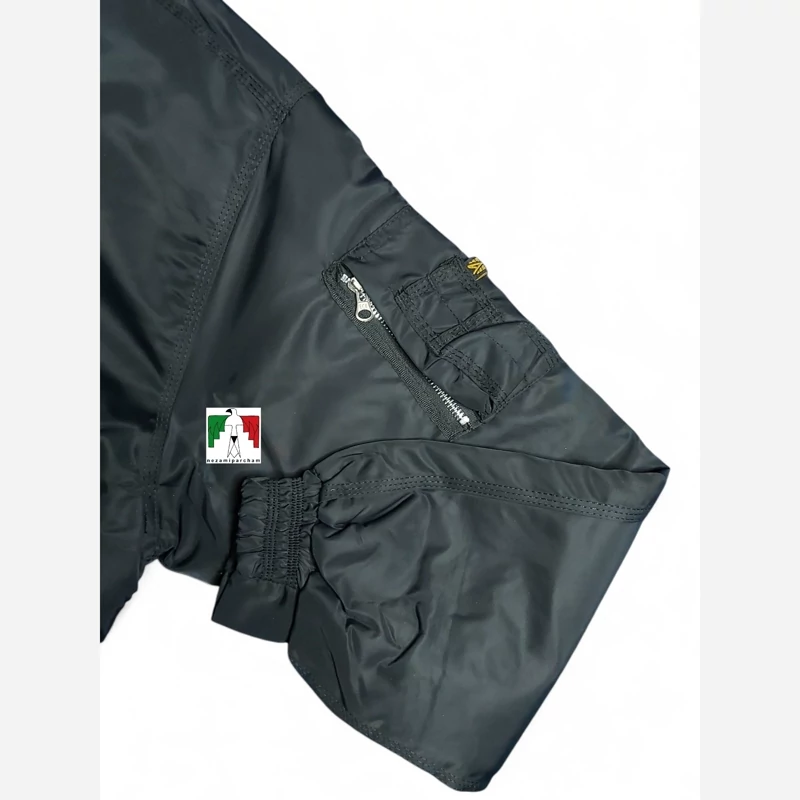 کاپشن خلبانی سوپر خلبانی مشکی طرح آلفا خارجی کاپشن پرواز زمستانه ضدآب و باد یقه دار کاپشن کوهنوردی و نظامی