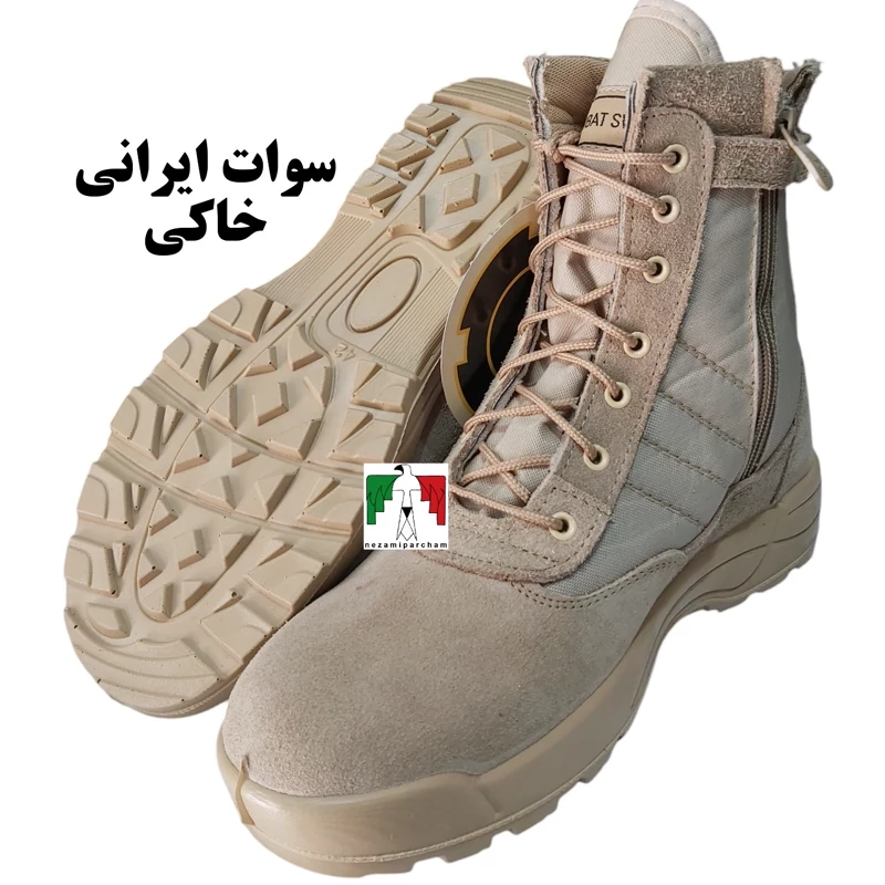 پوتین کوهنوردی سوات خاکی درجه یک زیپدار طبی پوتین سوات خاکی پوتین سبک پوتین نظامی چرم تبریز پوتین مرزبانی بغل برزنت swat