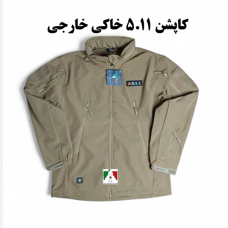 کاپشن تاکتیکال 511 خاکی خارجی سبک مقاوم آب و باد کاپشن کوهنوردی چند جیب نظامی ارتشی کاپشن 5.11 طبیعتگردی بادگیر اورکت