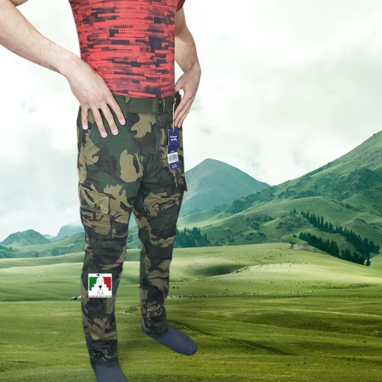 شلوار شش جیب پلنگی تم زرد کارگو LRJ کتان کش خارجی شلوار کوهنوردی 6جیب مردانه استتار شلوار چریکی لجنی طبیعتگردی شیش جیب