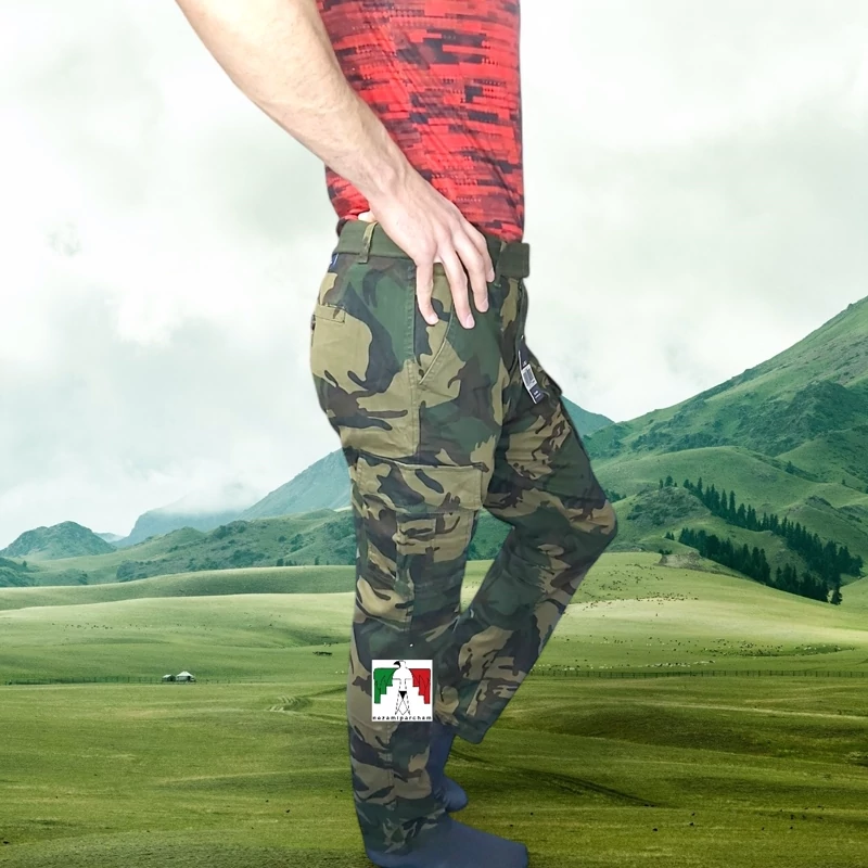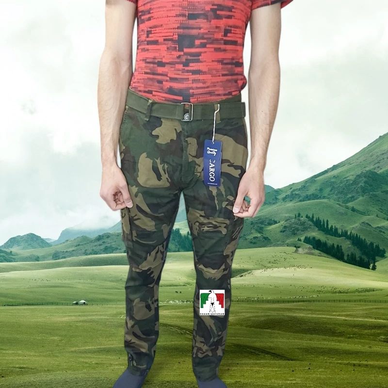 شلوار شش جیب پلنگی تم زرد کارگو LRJ کتان کش خارجی شلوار کوهنوردی 6جیب مردانه استتار شلوار چریکی لجنی طبیعتگردی شیش جیب