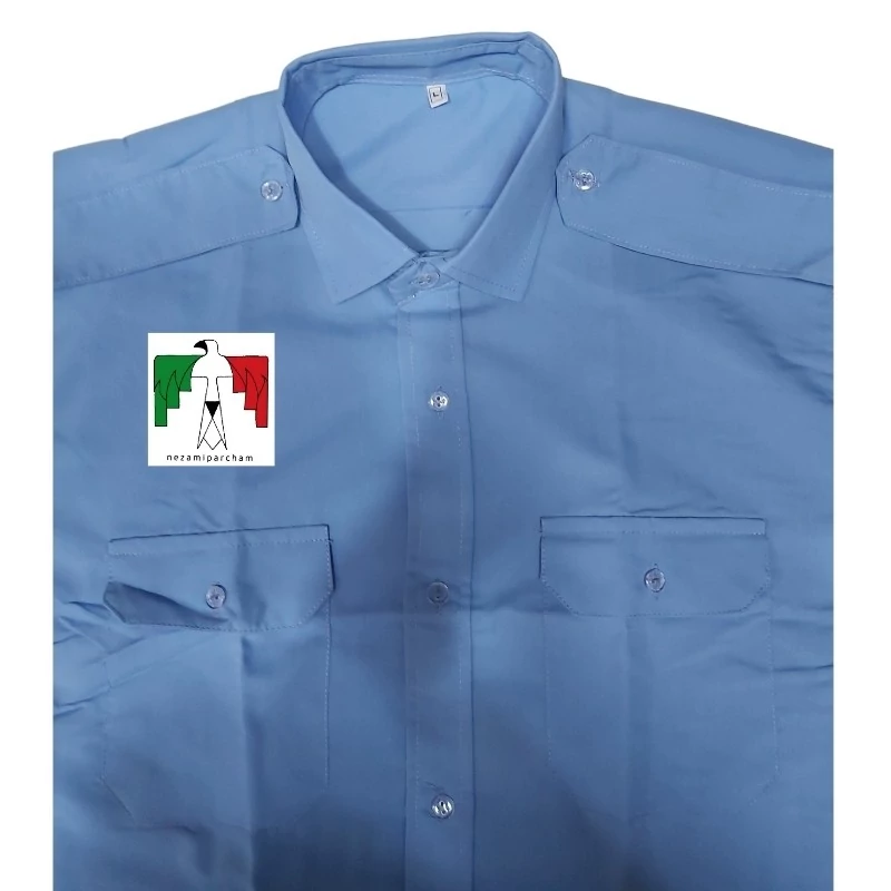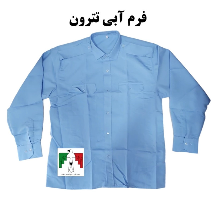 پیراهن فرم آبی تترون دو جیب پاگن دار کار نگهبان پارکینگ راننده اتوبوس حراست حفاظت روزمره پیراهن اداری پیراهن پرسنلی