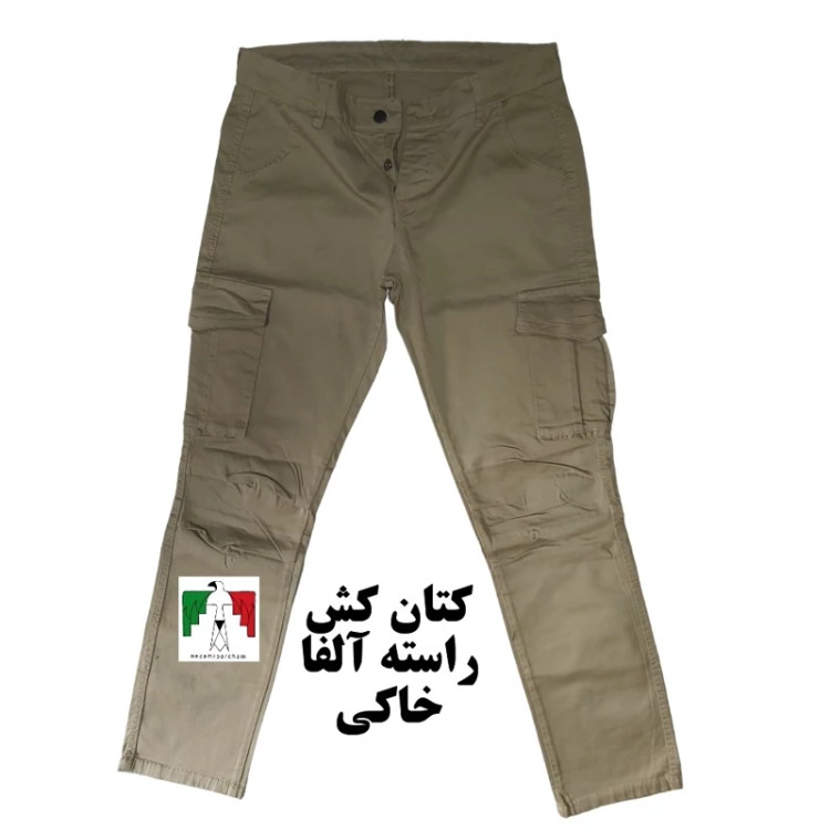 شلوار شش جیب خاکی کتان کش راسته آلفا روزمره شلوار کوهنوردی شلوار کار شلوار کتان کش 6جیب خارجی