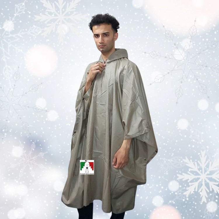 پانچو بارانی خاکی ضخیم درجه یک ضدآب پانچو کوهنوردی خفاشی شنلی کلاه دار پشت لاستیکی لباس ضد آب و باد بادگیر یک تکه