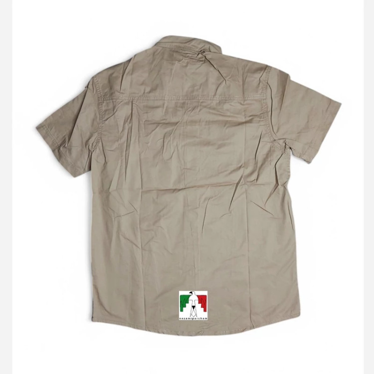پیراهن مردانه جیپ خاکی آستین کوتاه اورجینال پیراهن کوهنوردی دو جیب طبیعتگردی کتان مارک جیپ اعلا خارجی JEEP