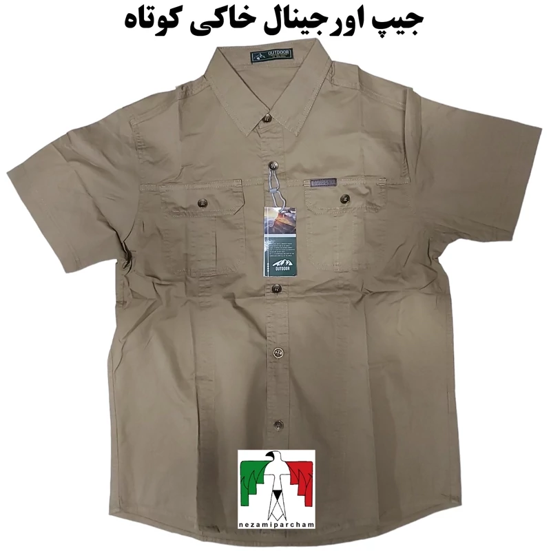 پیراهن مردانه جیپ خاکی آستین کوتاه اورجینال پیراهن کوهنوردی دو جیب طبیعتگردی کتان مارک جیپ اعلا خارجی JEEP