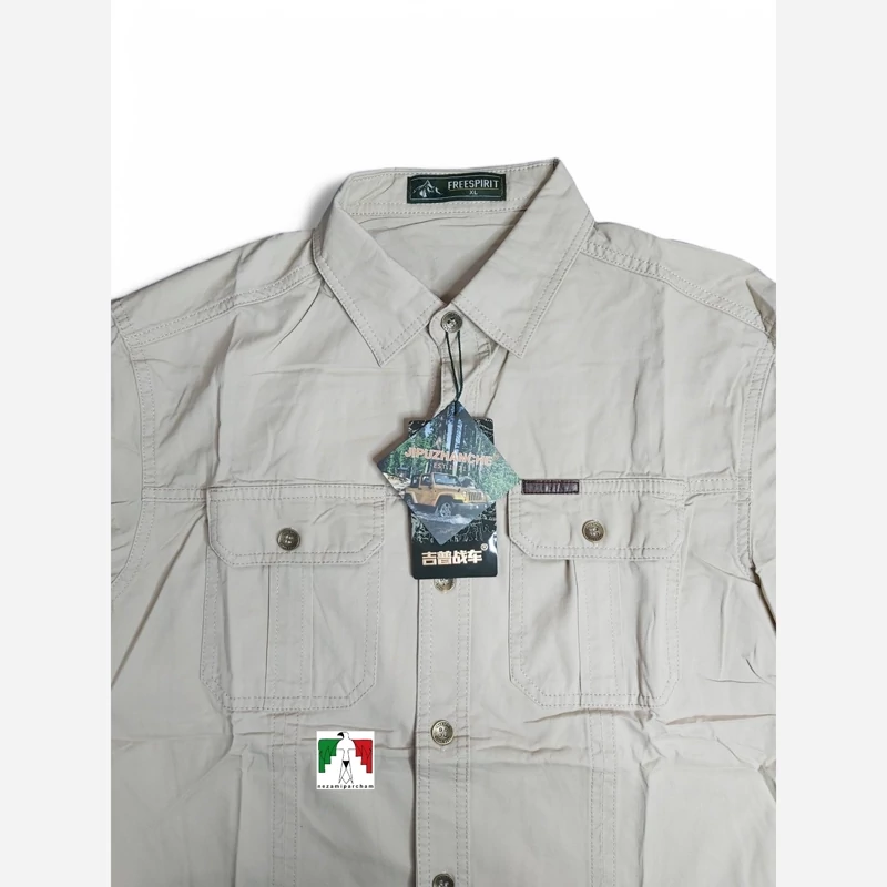 پیراهن مردانه جیپ کوهنوردی کرم خارجی آستین بلند پیراهن کتان مردانه دو جیب طبیعتگردی JEEP پیراهن جیپ پیراهن کوهنوردی