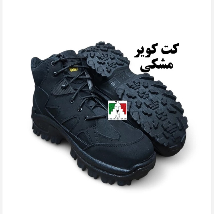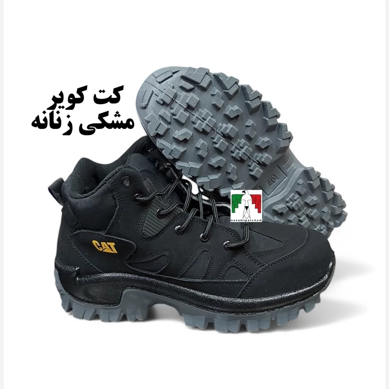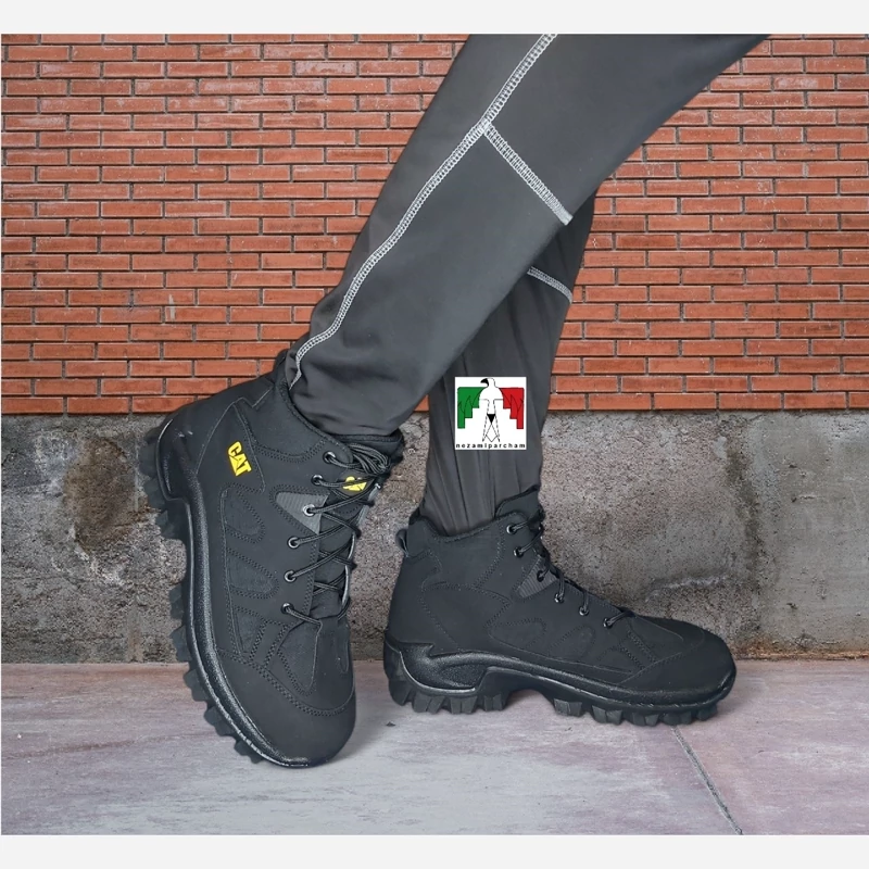 کفش کوهنوردی کت کویر مشکی نیم بوت طبیعتگردی مشکی کفش ساقدار کوهی مقاوم محکم سبک کفش کت CAT KAVIR کار مشکی نیم پوتین کوه