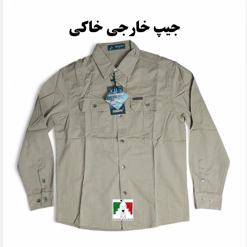 پیراهن مردانه جیپ خاکی خارجی آستین بلند پیراهن کتان مردانه دو جیب طبیعتگردی JEEP پیراهن جیپ پیراهن کوهنوردی جیپ