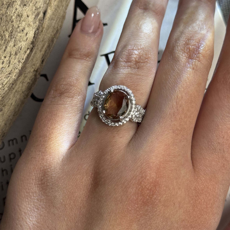 این انگشتر نقره زنانه با سنگ الکساندریت و مخراج کاری برلیان عیار 925 با وزن 4 گرم دارای روکش طلا سفید (رادیوم) می باشد. کیفیت ساخت کار بالا بوده و در روکش آن از مواد حساسیت زا مانند نیکل استفاده نشده است روکش طلا سفید و جلوه زیبا و درخشان کار باعث شده از نظر ظاهری تفاوتی با طلا نداشته باشد. همچنین مخراج کاری نگین ها طوری انجام شده که در برابر ضربه مقاوم باشند. آبکاری رادیوم علاوه بر درخشندگی خیرهکننده از سیاه شدن و خراشیدگی انگشتر جلوگیری میکند و حس لوکس بودن را به شما هدیه میدهد. این انگشتر انتخابی خاص برای خانم هایی است که به دنبال ترکیبی از کیفیت و زیبایی هستند و همچنین می تواند هدیهای فوقالعاده برای عزیزان شما باشد لازم به ذکر است سنگ الکساندریت در نور های مختلف قابلیت تغییر رنگ دارد.