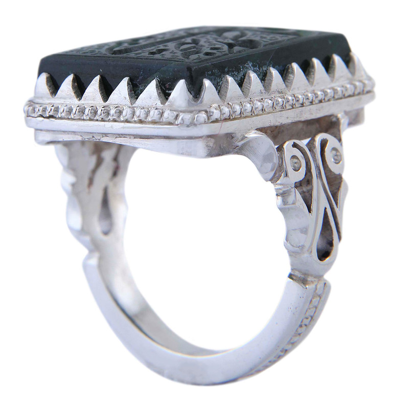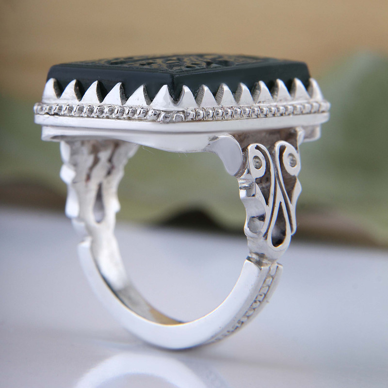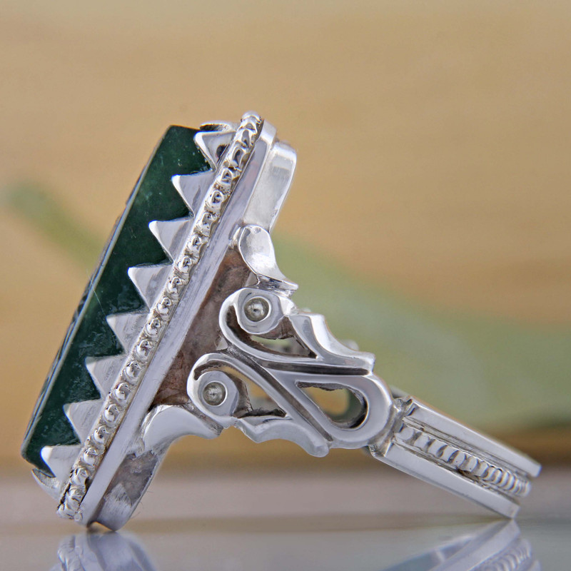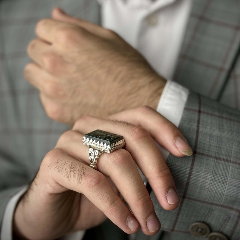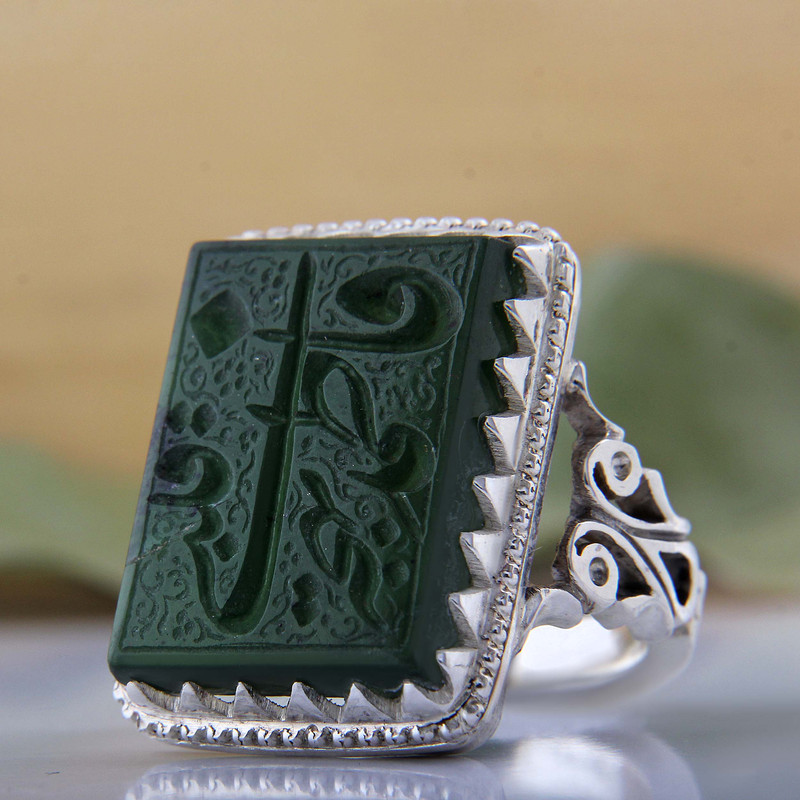 اگر دنبال خرید انگشتر نقره هستید این انگشتر نقره با رکاب دستساز کلکسیونی نقره عیار بالا به همراه عقیق یشم طبیعی با حکاکی فاطمه بهجه قلبی که با دقت و ظرافت بالایی ساخته شده است گزینه مناسبی برای عاشقان انگشتر میباشد سنگ عقیق از دیرباز مورد توجه همگان بوده و هست و احادیث زیادی در مورد استفاده این سنگ وجود دارد. و به خاطر خواص معنوی ای که دارد از پراستفاده ترین سنگها در بین مردم میباشد. همچنین قبایل و ملل کهن جهان عقیق را سنگ مقدسی می دانسته اند و آن را از خود دور نمی کرده اند عقیق سنگی است که آن را حرز و حامی انسان در مقابل بلایا و حوادث به ویژه در جنگ ها می شمارند