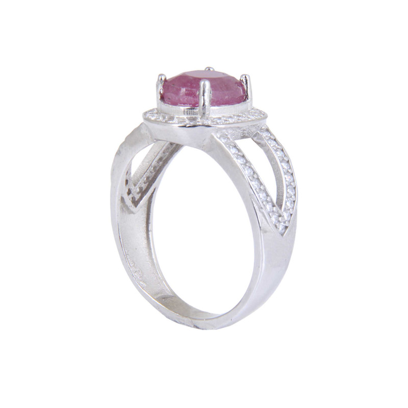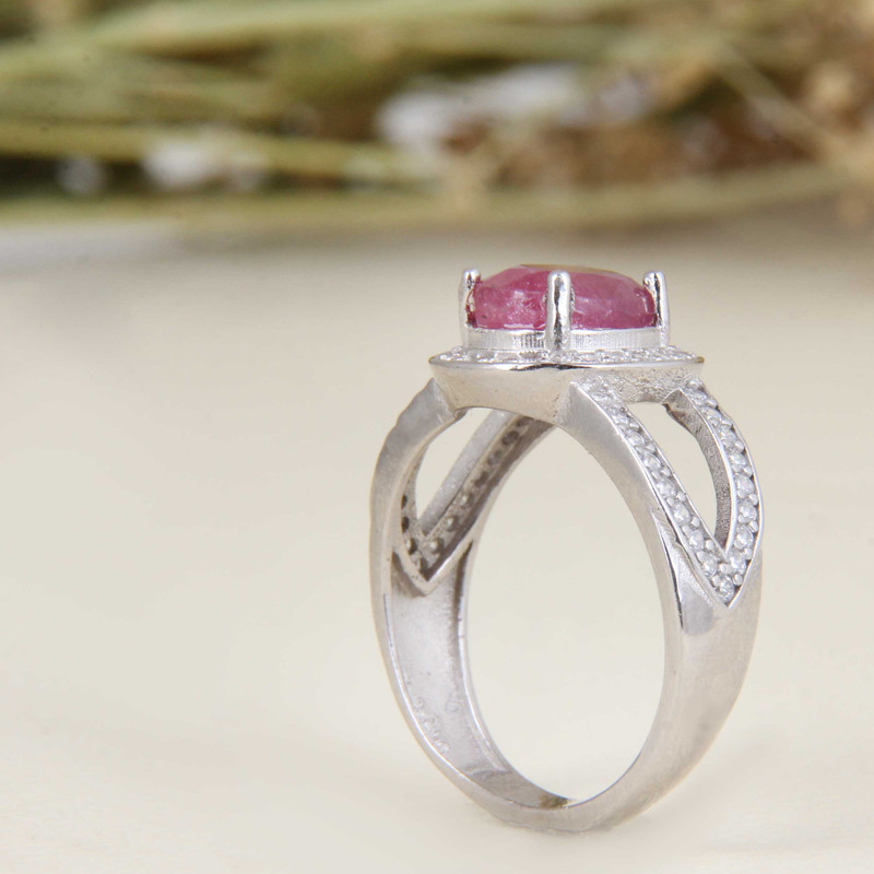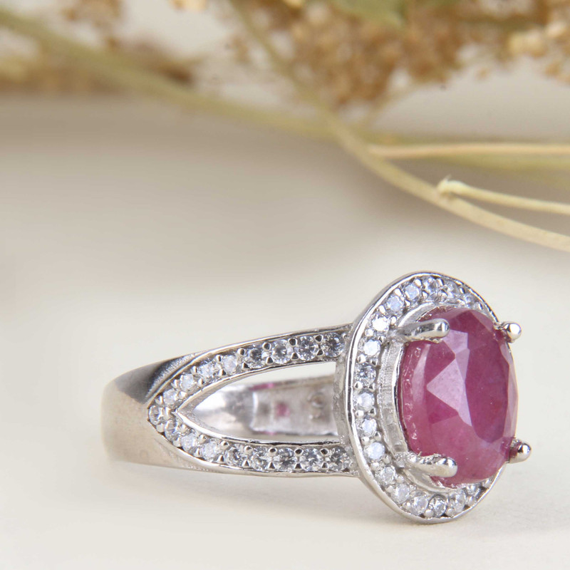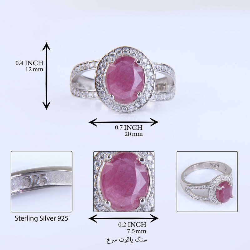این انگشتر نقره زنانه سنگ یاقوت سرخ طبیعی معدنی تراش جواهری با مخراج کاری برلیان عیار 925 به وزن 4.37 گرم دارای روکش طلا سفید (رادیوم) می باشد. کیفیت ساخت کار بالا بوده و در روکش آن از مواد حساسیت زا مانند نیکل استفاده نشده است روکش طلا سفید و جلوه زیبا و درخشان کار باعث شده از نظر ظاهری تفاوتی با طلا نداشته باشد. همچنین مخراج کاری نگین ها طوری انجام شده که در برابر ضربه مقاوم باشند. آبکاری رادیوم علاوه بر درخشندگی خیرهکننده از سیاه شدن و خراشیدگی انگشتر جلوگیری میکند و حس لوکس بودن را به شما هدیه میدهد. این انگشتر خاص انتخابی خاص برای خانم هایی است که به دنبال ترکیبی از کیفیت و زیبایی هستند
