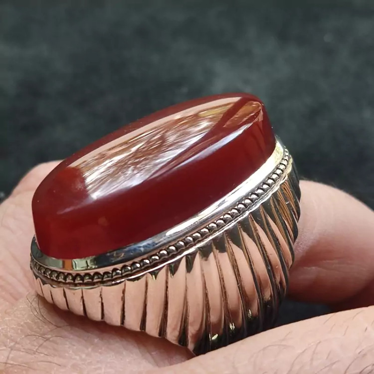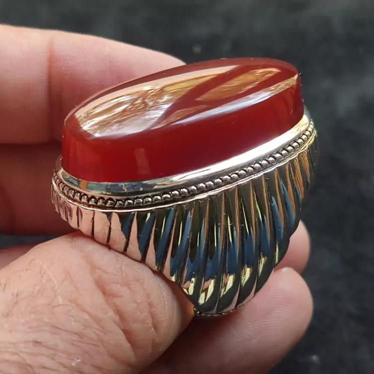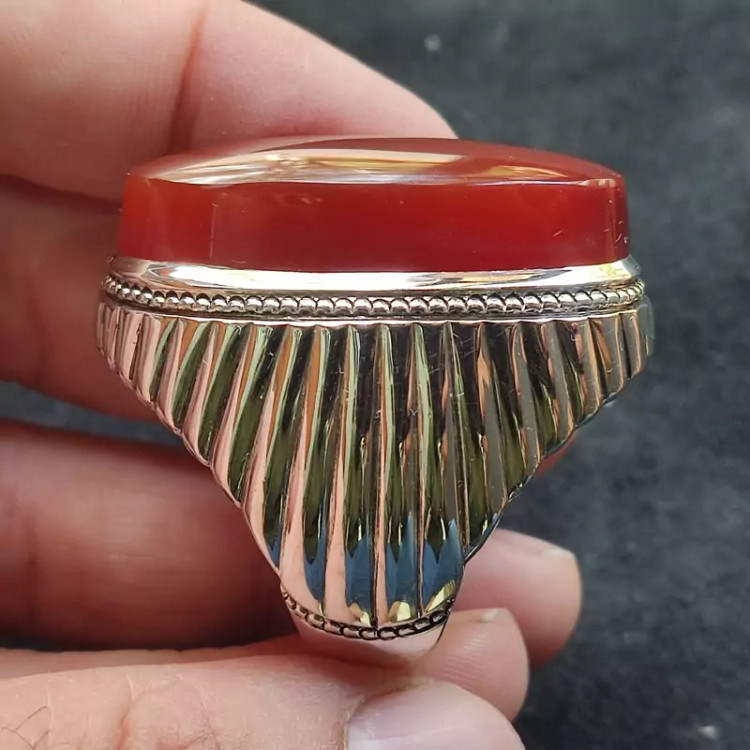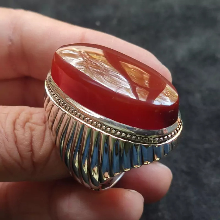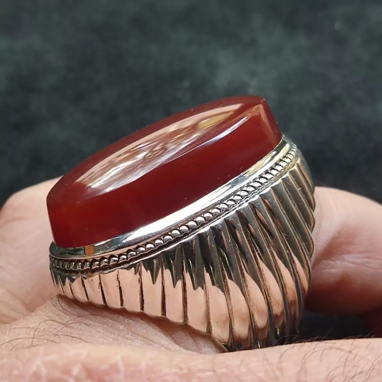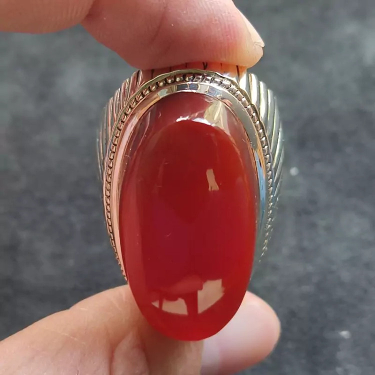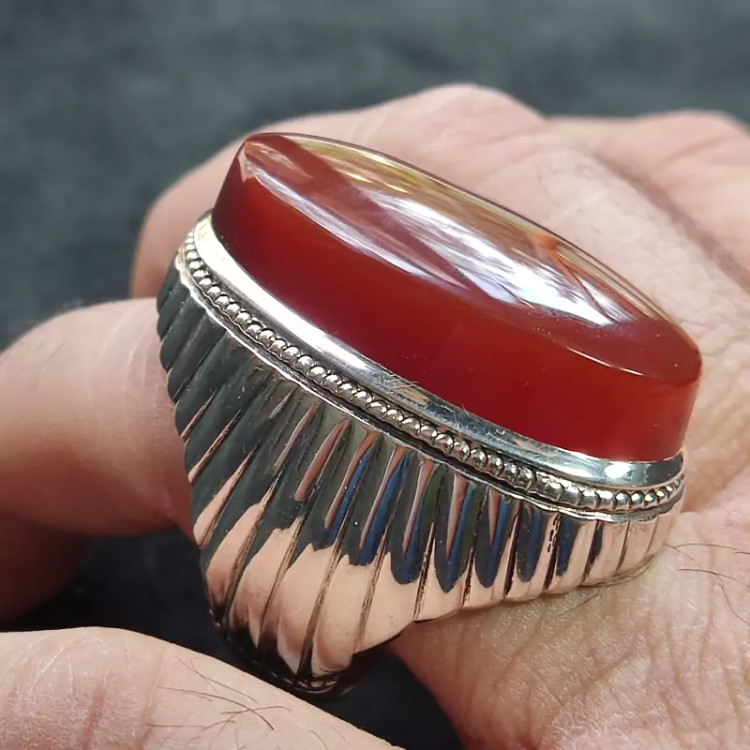 انگشتر فدیوم عقیق سرخ یمنی اصلی درشت رکاب دستساز گ