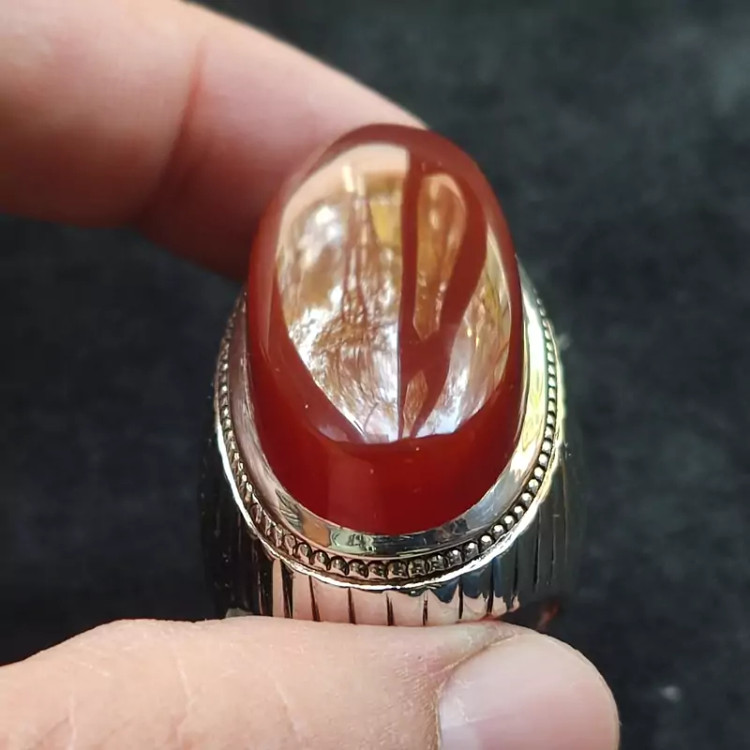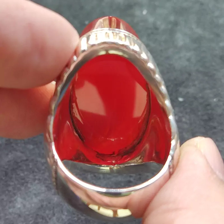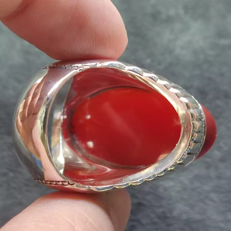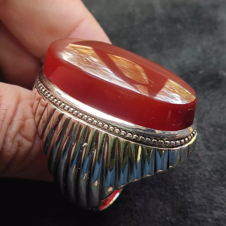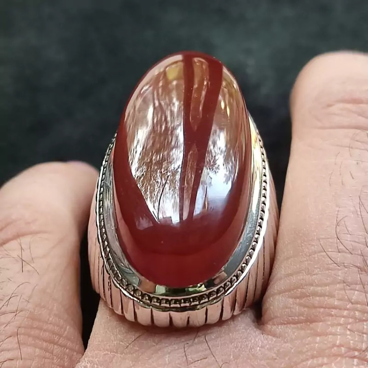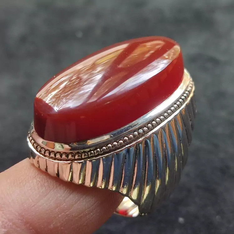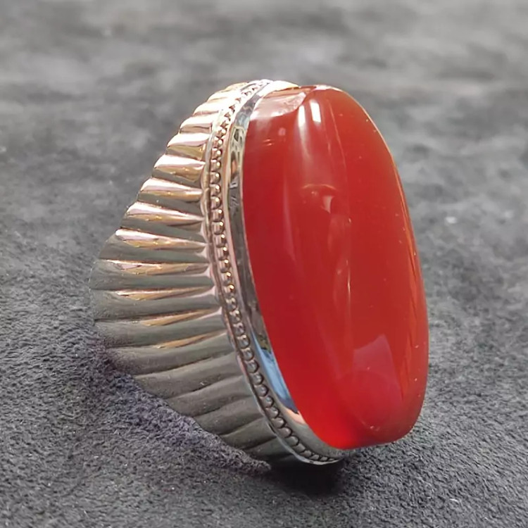 انگشتر فدیوم عقیق سرخ یمنی اصلی درشت رکاب دستساز گ